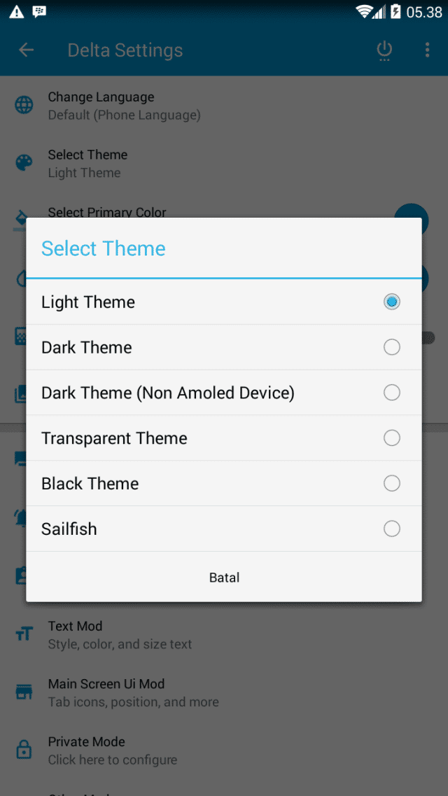 dalam satu BBM Mod terdapat beberapa Tema Color yang disediakan.
