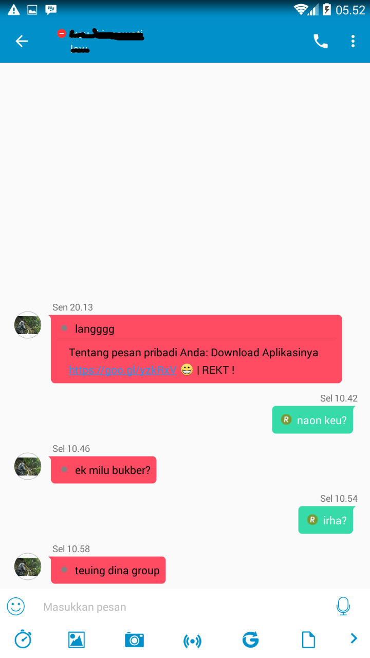 pesan dari teman dan saat membukanya tanpa membalas, tampilan pesan di